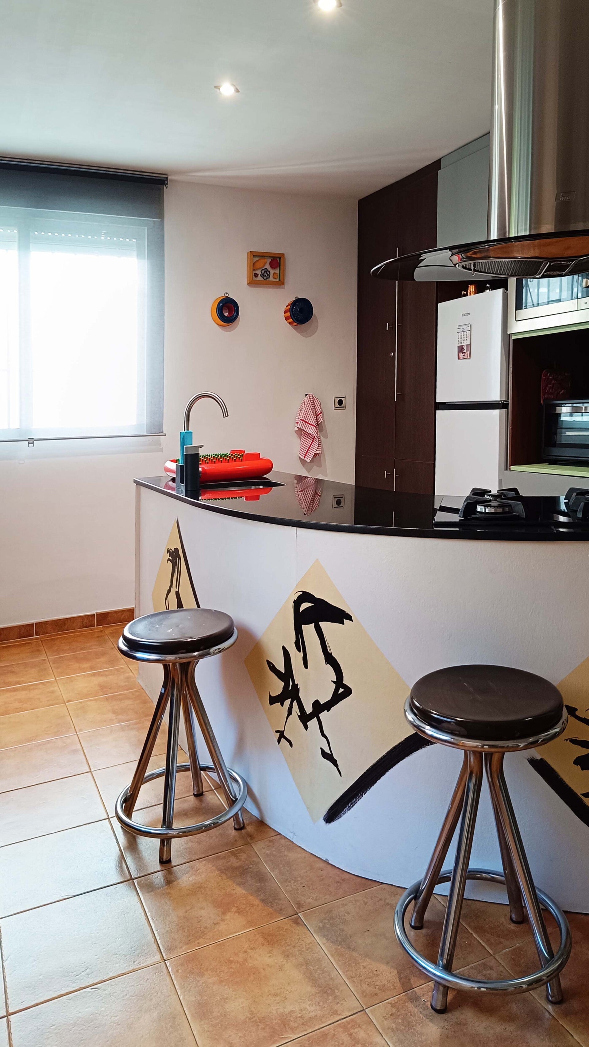 El dormitorio grande tiene una cama de matrimonio y el otro dormitorio tiene dos camas individuales, ambos con armarios. La casa está totalmente equipada, calefacción eléctrica en todas las estancias (incluido el baño), ventilador de techo en el dormitorio grande, cafetera Nespresso, cafetera italiana, todo el menaje necesario en la cocina, copas de vino, batidora, tostadora, utensilios para la barbacoa, lavavajillas, lavadora, vitrocerámica a gas con cuatro fuegos, secador de pelo, dispensador de champú y gel de baño, etc.